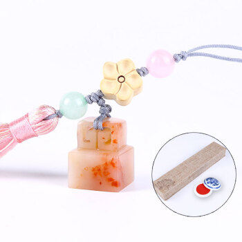 孔府印閣書法篆刻印鑑個人氏名印オーダーメイドラオス石如意ボタン捺印個人石印鑑個人捺印制作印印ラオス石方如意ボタン【ピンク流蘇金】15-15-18 mm【写真価格ブランド見積り】-