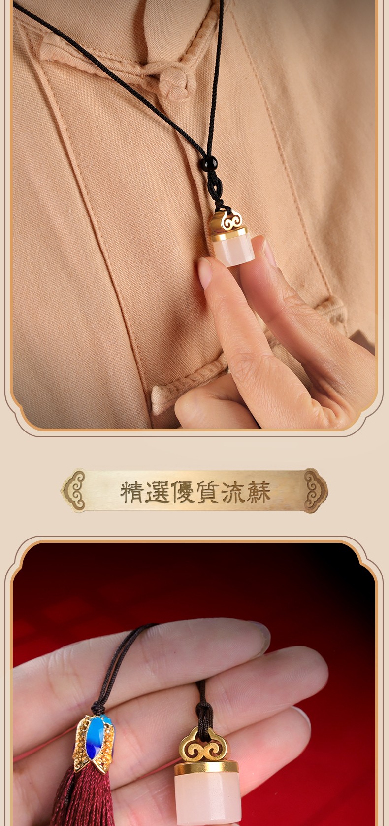 孔府印閣の印鑑は名前の小さい丸い章の黄銅の天然の白玉のペンダントのアクセサリの贈り物の玉のペンダントのネックレスの吉祥如意の男女のアクセサリを注文して贈り物の記念品に字の印鑑を彫って白玉如意のボタンの印鑑(ペンダントの金)を押します。