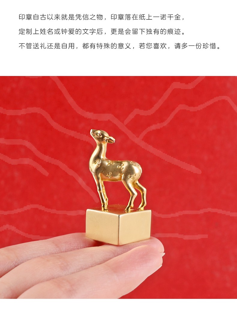 孔府印閣は小鹿の黄銅の印鑑を注文して、篆刻を含めて個性的に注文して注文して作らせます。名前章蔵書章闲章火漆印鑑は学生個人の誕生日プレゼントです。ビジネスプレゼントです。