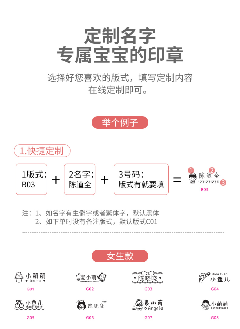 猫太子 (MAOTAIZI) 定制印章儿童幼儿园姓名防水不掉色卡通可爱宝宝衣服盖章定做小学生用按压签名 月光宝盒
