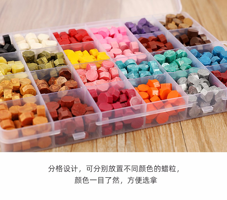 倾沫 复古混色婚礼结婚火漆印鑑蜡粒请帖密封蜡套装24色套装金粉火漆蜡粒颗粒分格收纳盒 套餐三【图片 价格 品牌 报价】-