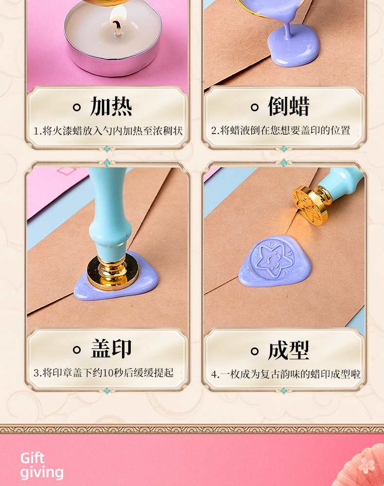 法拉蒙火漆印鑑套装全套蜡粒透明熔炉垫板收纳盒手柄蜡烛便宜木质印鑑欧式风套装礼盒生日礼物火漆印鑑オーダーメイル 火漆印鑑9件套-粉色【图片 价格 品牌 报价】-